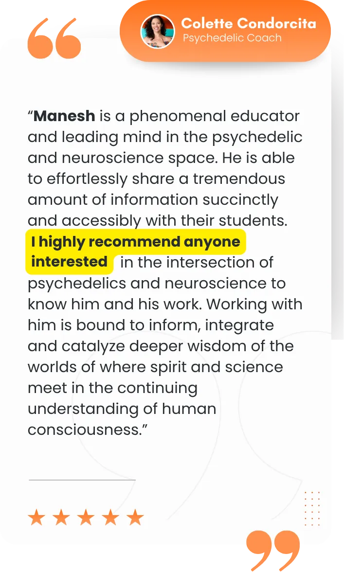 Neuroscientist, facilitator, and integrator. Dr. Manesh brings grounded practices that turn breakthrough experiences into lasting transformation.